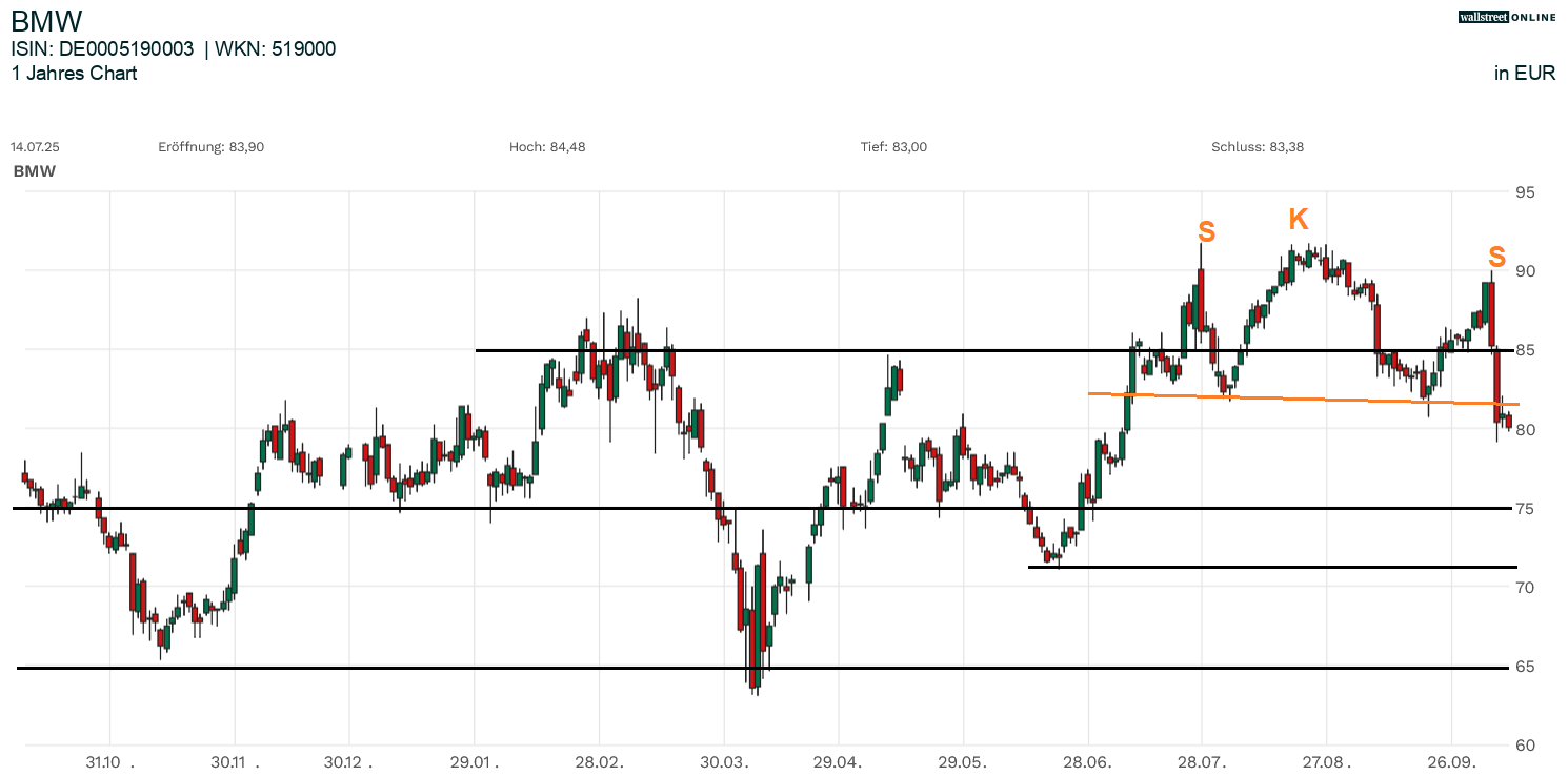 Die (bangen) Blicke richten sich nun auf die Unterseite und damit auf die eminent wichtigen Unterstützungen von 75 Euro und 71,5 Euro (markantes Juni-Tief). Einem Test der beiden genannten Kursbereiche steht nicht mehr sonderlich viel im Wege. Sollte der Abverkauf weiter Fahrt aufnehmen, könnte es auch noch einmal auf 65 Euro für die Aktie gehen. Die Aktie ist mittlerweile aber überverkauft. Gegenbewegungen erlangen jedoch erst Relevanz, sollten sie die Aktie wieder über die Marke von 85 Euro führen. Solange dieser Fall nicht eingetreten ist, sind etwaige Vorstöße auf der Oberseite mit Zurückhaltung zu bewerten. Kurzum. Die nächsten Tage werden für die BMW-Aktie richtungsweisend.