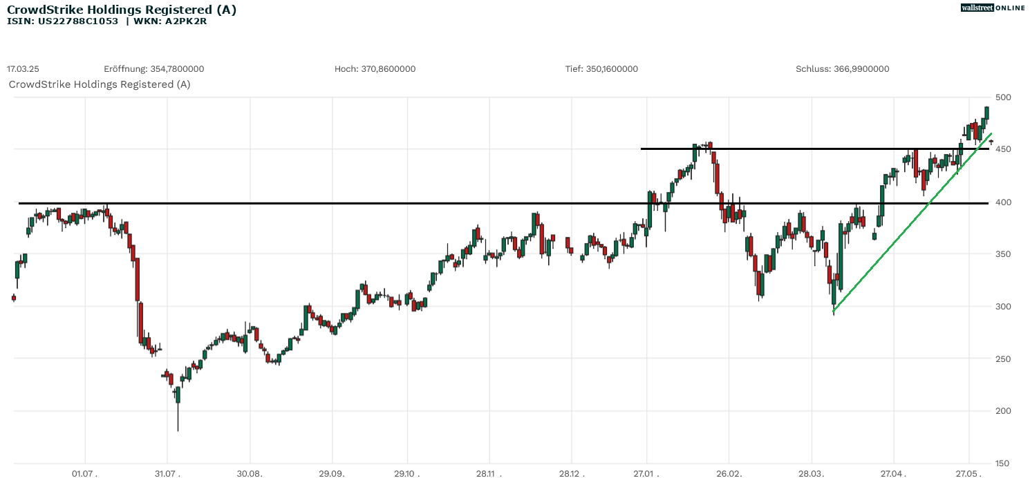 CrowdStrike Holdings Registered (A) 417,28 EUR +0,52 % Lang & Schwarz