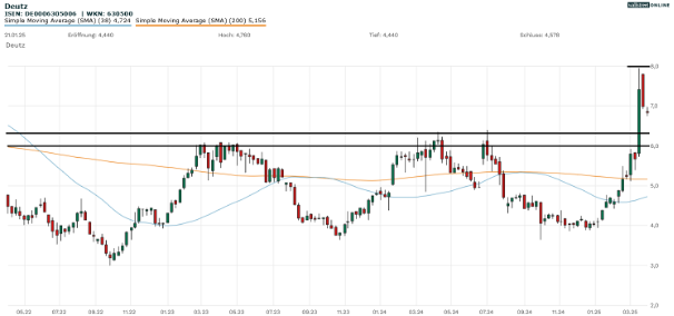 Vergleichsweise spät wurde auch die Aktie des Motorenherstellers Deutz (WKN: 630500 | ISIN: DE0006305006 | Ticker-Symbol: DEZ) vom Rüstungshype erfasst. Die Vehemenz der Rally war dennoch beeindruckend.