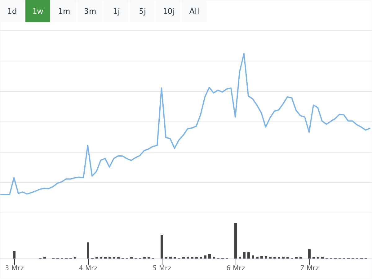 Die Aktie des französischen Satellitenbetreibers Eutelsat erlebt derzeit einen historischen Höhenflug: Nach einem Plus von 68 % am Montag, 77 % am Dienstag und weiteren 120 % am Mittwoch lag die Gesamtsteigerung bei 328 %. Am Donnerstag (6. März) erreichte das Papier zwischenzeitlich sogar einen Kursgewinn von 675 %. Anleger, die vor einer Woche investiert haben, konnten ihren Einsatz vervielfachen.