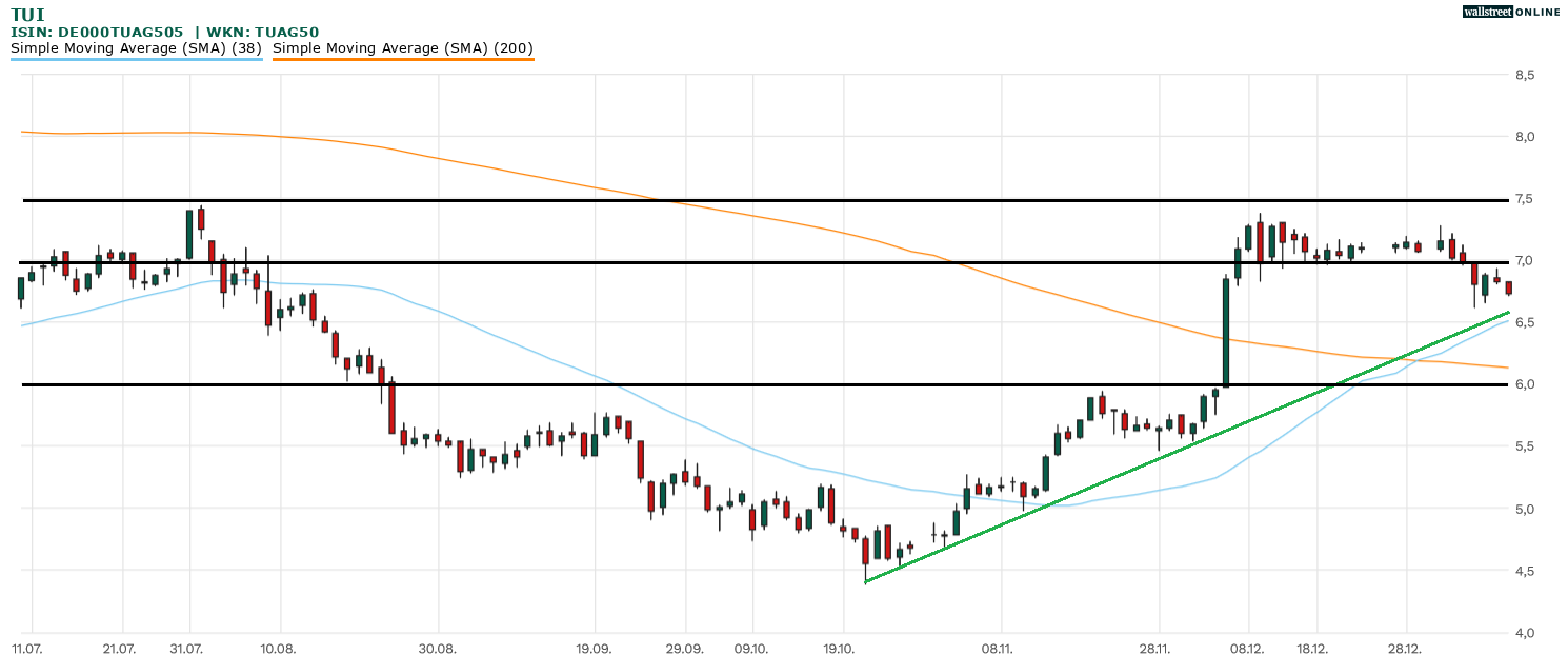 Unsere letzte Kommentierung zur TUI-Aktie (WKN: TUAG50 | ISIN: DE000TUAG505 | Ticker-Symbol: TUI1) überschrieben am 04. Januar mit „Das (bange) Warten geht weiter, Teil 2.“. Die Aktie „tanzte“ auf der eminent wichtigen Unterstützung um 7 Euro und das bereits seit geraumer Zeit. Obgleich die Unterstützung sich bereits eine hohe Relevanz erarbeitet hatte, kam es, wie es kommen musste. Die TUI-Aktie tauchte darunter ab. Aus charttechnischer Sicht war das ein herber Rückschlag.