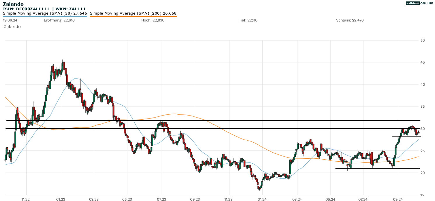 Die Zalando-Aktie (WKN: ZAL111 | ISIN: DE000ZAL1111 | Ticker-Symbol: ZAL) stand kürzlich unmittelbar davor, das imposante Comeback mit einem Ausbruch über die Widerstandszone 30 Euro / 32 Euro zu krönen. Das Unterfangen scheiterte. Mit starken Quartalsergebnissen im Rücken könnte es durchaus einen weiteren Anlauf geben.