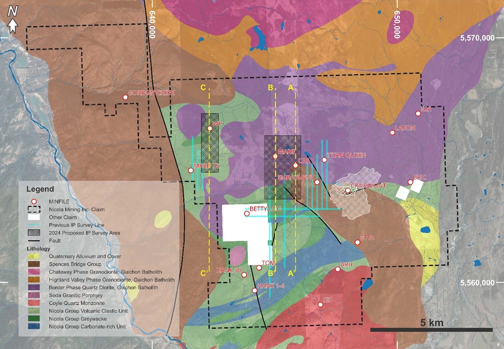 Peter Espig, CEO von Nicola Mining Inc. kommentierte: „In den vergangenen zwei Jahren haben verschiedene moderne Explorationstechniken eine signifikante Korrelation mit älteren IP-Untersuchungen und Bohrungen ergeben. Da die vor kurzem kartierten mineralisierten Aufschlüsse in erheblichem Maße mit den beobachteten Anomalien übereinstimmen, sind wir zuversichtlich, dass die kommende IP-Untersuchung in den Zonen MARB-CAS und West Craigmont solide Bohrziele ergeben wird.“