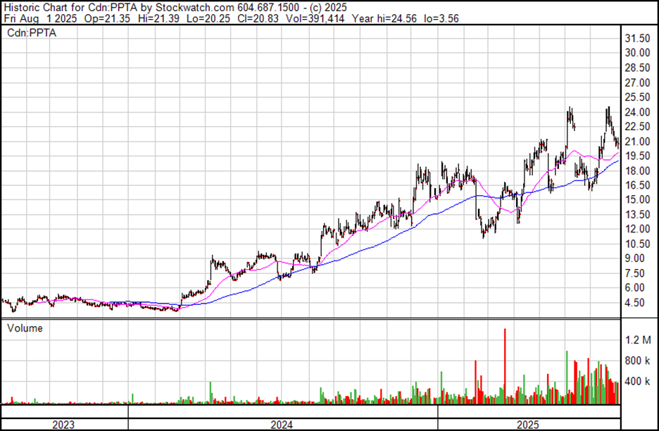 Wir haben dieses Muster bereits bei Perpetua Resources (NASDAQ: PPTA) gesehen, deren Aktienkurs sich von unter 3 auf über 20 Dollar vervielfacht hat – unterstützt durch staatliche Förderung, Ressourcenausweitung und steigende Antimonpreise.