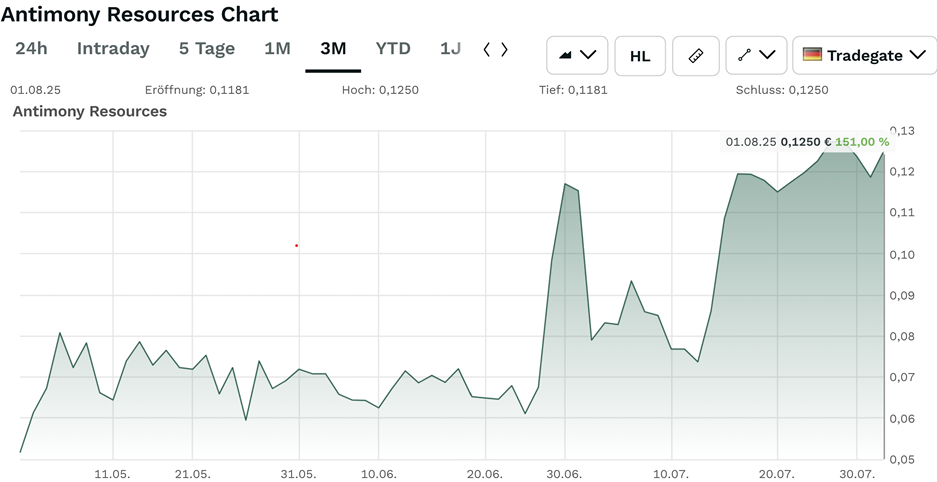 Die Rede ist von Antimony Resources Corp. (WKN: A414DM SYM: K8J0).