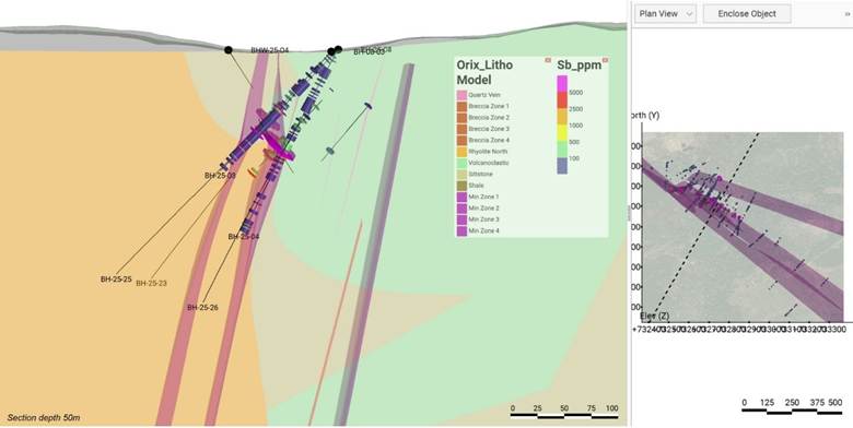 Diese Ergebnisse zählen ohne Übertreibung zu den höchstgradigen und kontinuierlichsten Antimon-Abschnitten, die jemals in Nordamerika gebohrt wurden.
