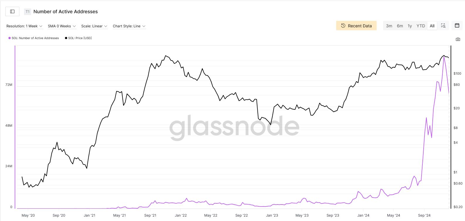 Anfang Dezember 2024 lag die Zahl der aktiven Solana Wallet-Adressen bei mehr als 66,7 Millionen. Tendenz stark wachsend