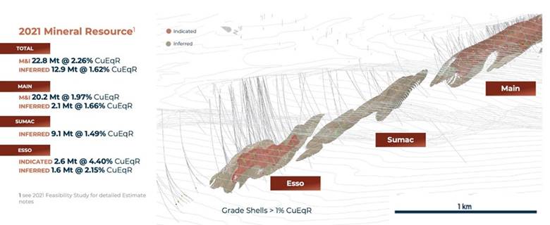 Measured- und Indicated-Ressourcen von 22,8 Millionen Tonnen mit 2,26% Kupferäquivalent.