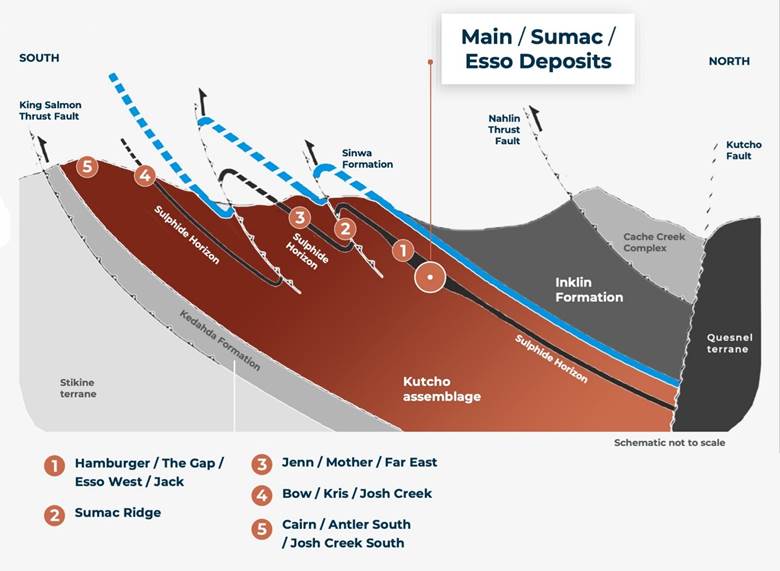 Der sogenannte Kutcho Time Horizon erstreckt sich über mehr als zwölf Kilometer Streichlänge und beherbergt die bekannten Lagerstätten.