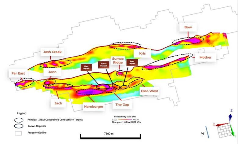 Innerhalb dieser Horizonte wurden mehr als zehn hochleitfähige ZTEM-Ziele identifiziert.