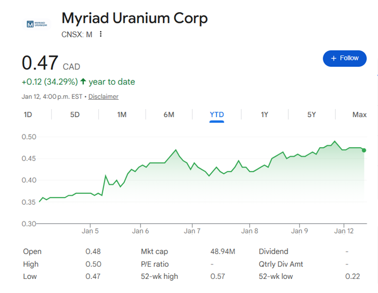Dadurch erhält Myriad die volle Kontrolle über eines der größten unerschlossenen Uranprojekte in den Vereinigten Staaten.