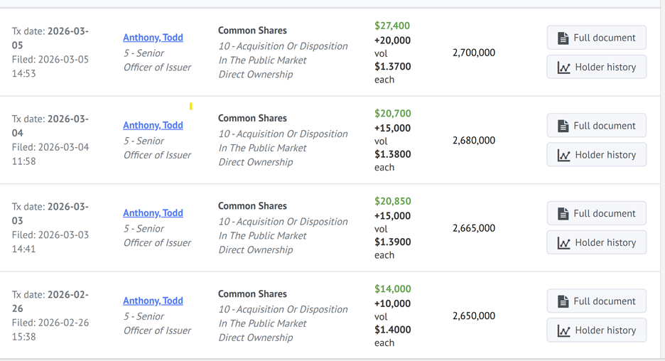 Explorationsunternehmen können den ganzen Tag über Größe, Entdeckungspotenzial und geologische Modelle sprechen. Doch wenn das Management beginnt, Aktien mit eigenem Geld am offenen Markt zu kaufen, wird die Botschaft deutlich stärker.