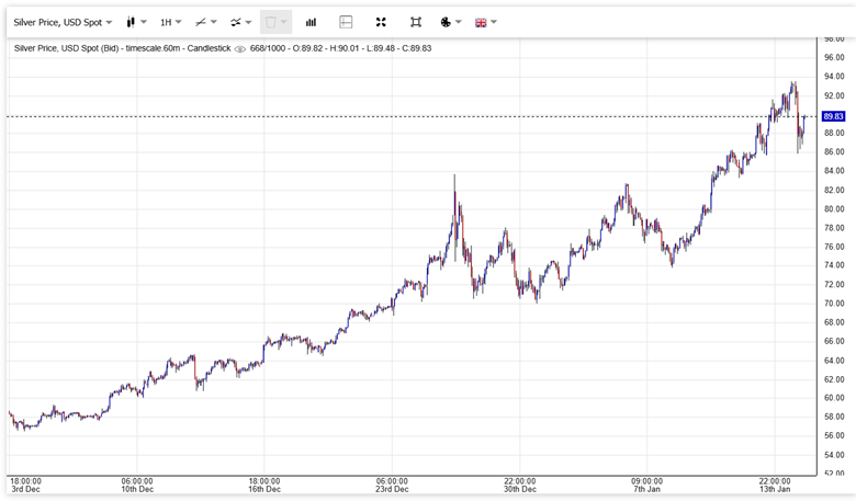 Nach Jahren der Underperformance hat Silber die Erwartungen regelrecht pulverisiert und die Marke von 90 US Dollar je Unze überschritten – mehr als das Dreifache des Preises vor nur zwölf Monaten.