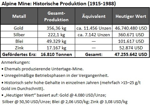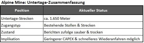 Alpine ist eine ehemals produzierende Untertage-Mine mit: