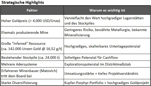 - Ein hochgradiger Gold-Wachstumstreiber innerhalb eines starken Kupfer-Portfolios.