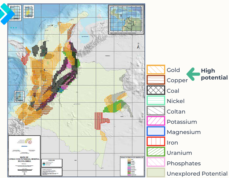 - Kolumbien steht im Fokus der internationalen Bergbauindustrie mit riesigen, unterexplorierten Goldvorkommen und einer bergbaufreundlichen Politik.
