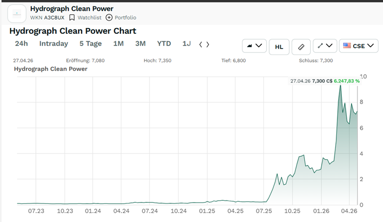 Sie haben gesehen, wie HydroGraph Clean Power Inc. von etwa 0,30 CAD auf 12 CAD gelaufen ist.